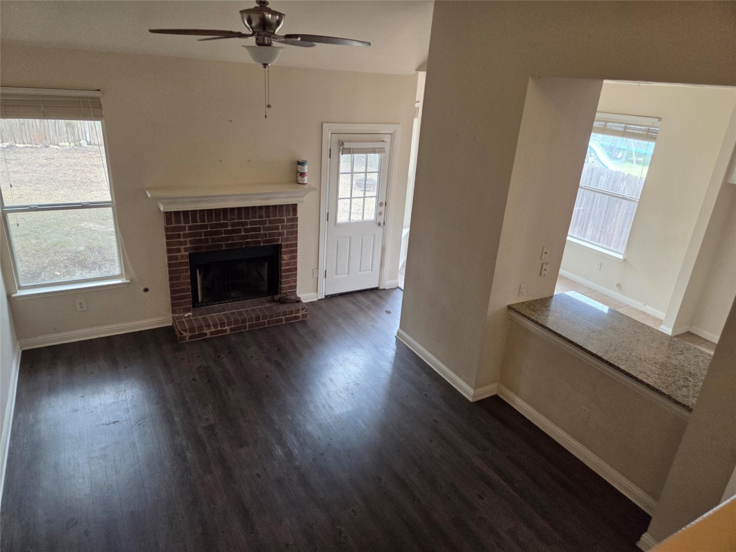 Enjoy high ceilings, durable vinyl plank flooring, and hard tile in all wet areas. Upstairs, you’ll find three additional bedrooms with plush carpet and a shared full bath. The kitchen and bathrooms are upgraded with granite countertops, offering both style and durability. Ceiling fans are installed in the living room and all bedrooms for year-round comfort.